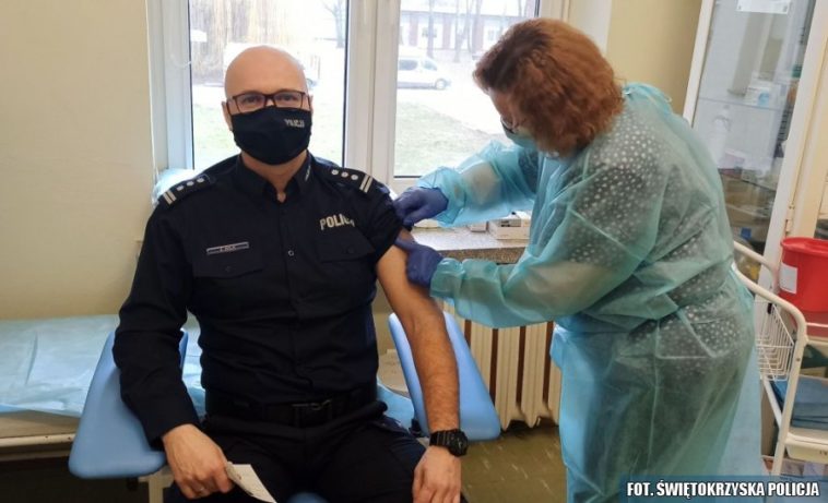 Mając powyższe na uwadze z pełną odpowiedzialności, po przyjęcie pierwszej dawki szczepionki do Szpitala Specjalistycznego Ducha Świętego w Sandomierzu, zgłosili się ostrowieccy mundurowi. Dając dobry przykład, jako pierwszy szczepionkę przyjął Komendant Powiatowy Policji w Ostrowcu Świętokrzyskim insp. Zbigniew Wilk. Za nim szczepieniom poddali się kolei policjanci. Sukcesywnie planowane są następne szczepienia.